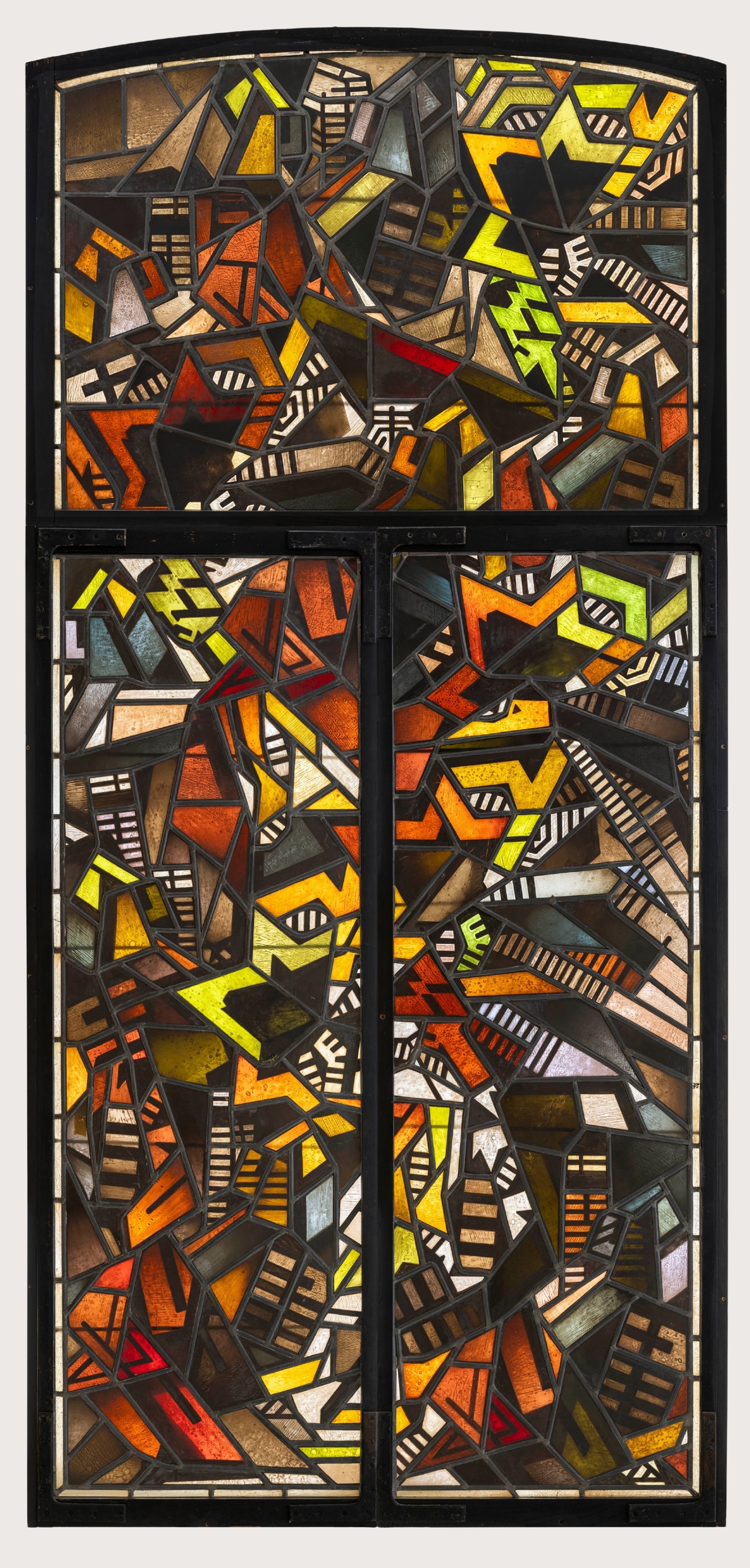 Het statige huis van Hugo Tutein Nolthenius (1863-1944) in Delft werd gesierd door meerdere glas-in-loodramen van Johan Thorn Prikker. Thorn Prikker was een van de grootste vernieuwers van de 20ste-eeuwse glazenierskunst. Hij liet het 'schilderen' los, waardoor de vormen en kleuren van het glas-in-lood de voorstelling bepalen. Dat is duidelijk te zien in dit driedelige glasraam van maar liefst 2,6 meter hoog. We kijken naar een geabstraheerde sterrennacht, die enigszins doet denken aan een collage.